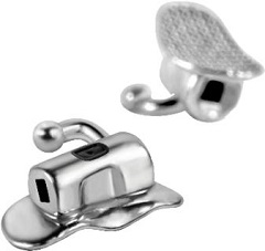 2、粘接型頰面管:近中向弓絲入槽口為導入槽設計,便于弓絲入槽;牽引鉤末端光滑,減少對軟組織的刺激;網底凹形弧度設計,與牙面更貼合。